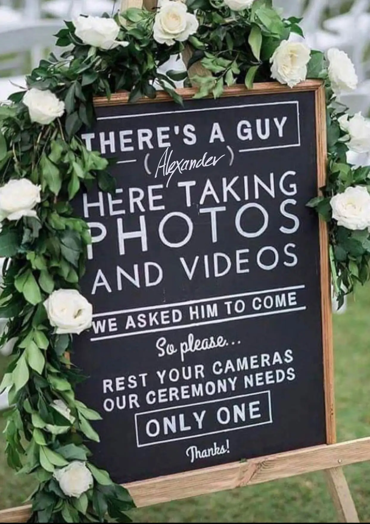 Als je samen hebt besloten om te kiezen voor een bruiloft zonder mobieltjes en camera’s, moet je dit natuurlijk wel even laten weten aan alle gasten. Maar hoe doe je dat? Zet het op de save-the-date kaarten, stuur een aparte brief of zorg er bijvoorbeeld voor dat de ceremoniemeester of weddingplanner alle gasten toespreekt voor de ceremonie begint. En laat diegene die het aankondigt ook even de trouwfotograaf aankondigen, zodat duidelijk is wie voor deze dag de “echte” fotograaf is die je heb ingehuurd om je huwelijk vast te leggen.